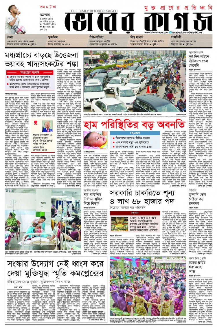 প্রিয় পাঠক ভোরের কাগজ ই- পেপার পড়ুন সম্পূর্ণ ফ্রি